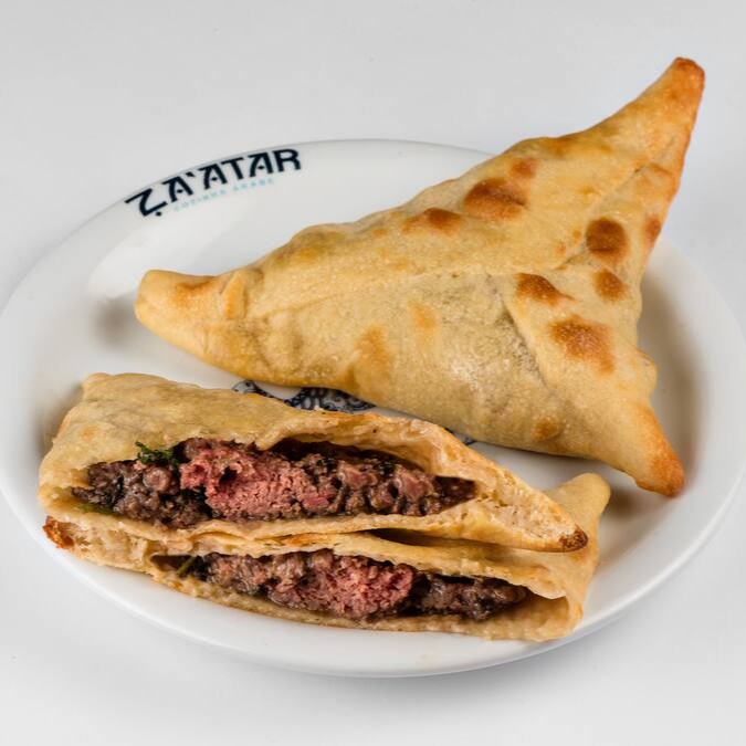 Recheado com carne e cebolas refogadas. Acompanha mini porção de tabule.