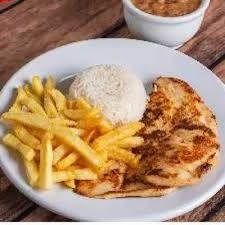 Frango grelhado com arroz, feijão, fritas e farofa + graravita