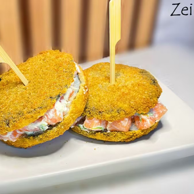 2 Sushi Burger Salmao Com Crem Chesse E Cebolinha