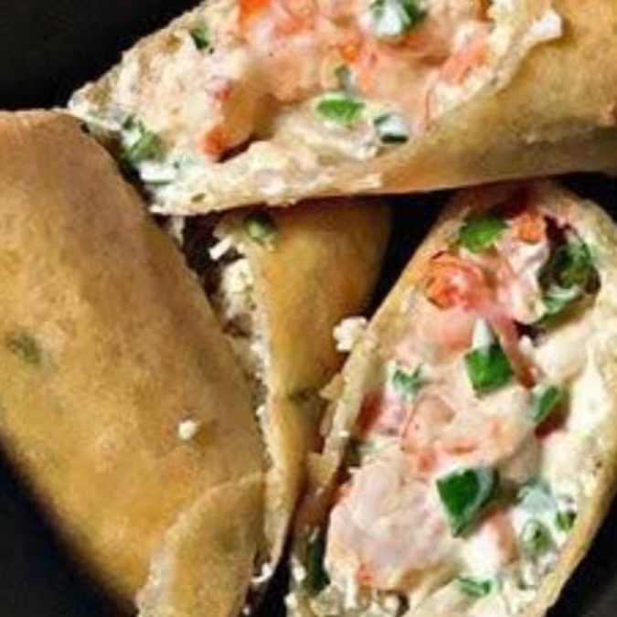 Camarao Com Cream Cheese,Arroz,Cebolinha Enrolado Em Folha De Rolinho Primavera (10 Unids)