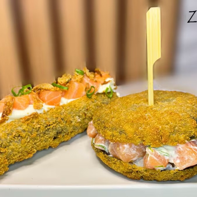 1 Sushi Burger Salmao Crem Chesse 1 Dog Salmao Crispy De Cebola