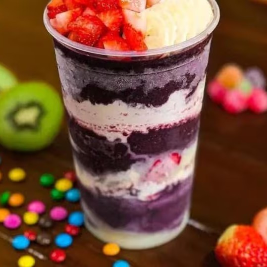 Delicioso açaí de 200ml montado do seu jeitinho com os complementos grátis em camadas dentro do copo. Venha experimentar!!!