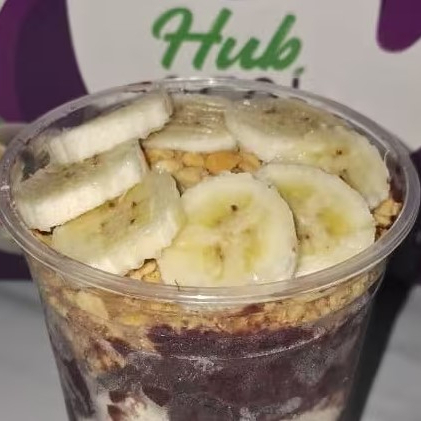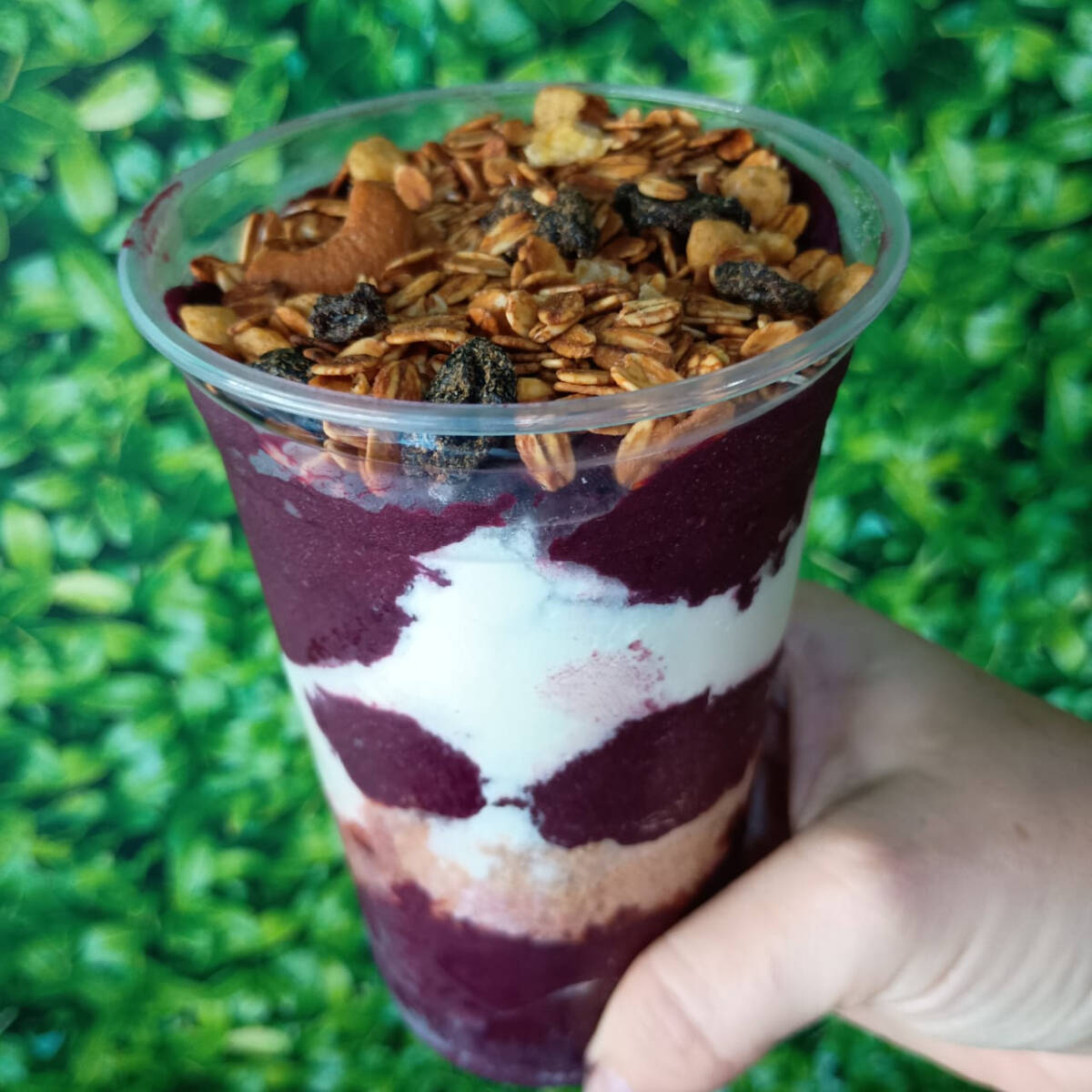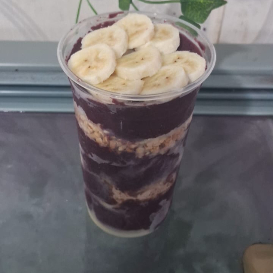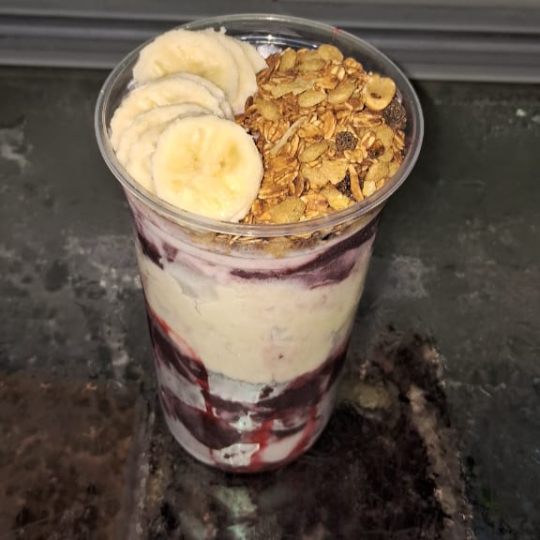 Açaí 400ml com granola e banana. acompanhamentos dentro do copo