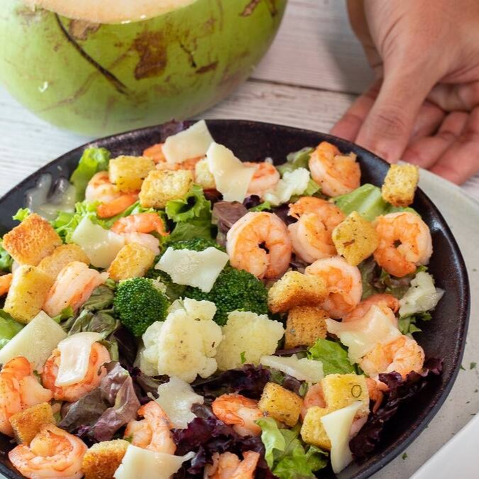 Salmão grelhado, camarão, cream cheese e cebolinha.