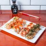 Sashimi maçaricado, ebi fire, toppu maki, ebitem especial e niguiri maçaricado com cream cheese e gergelim.