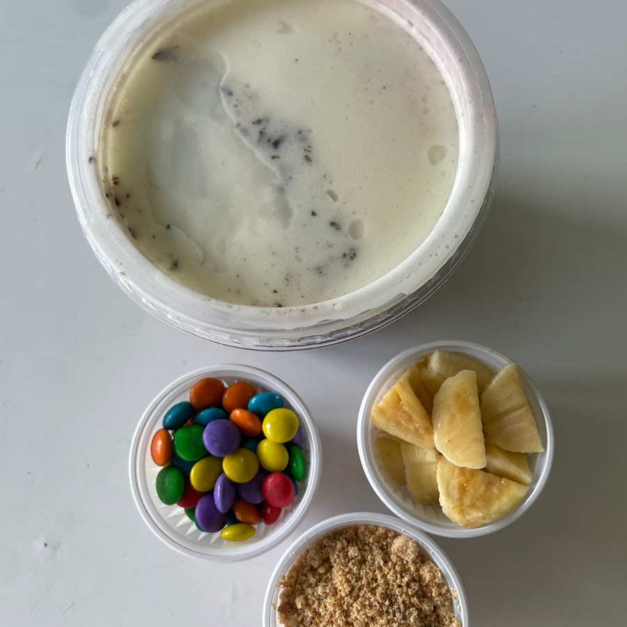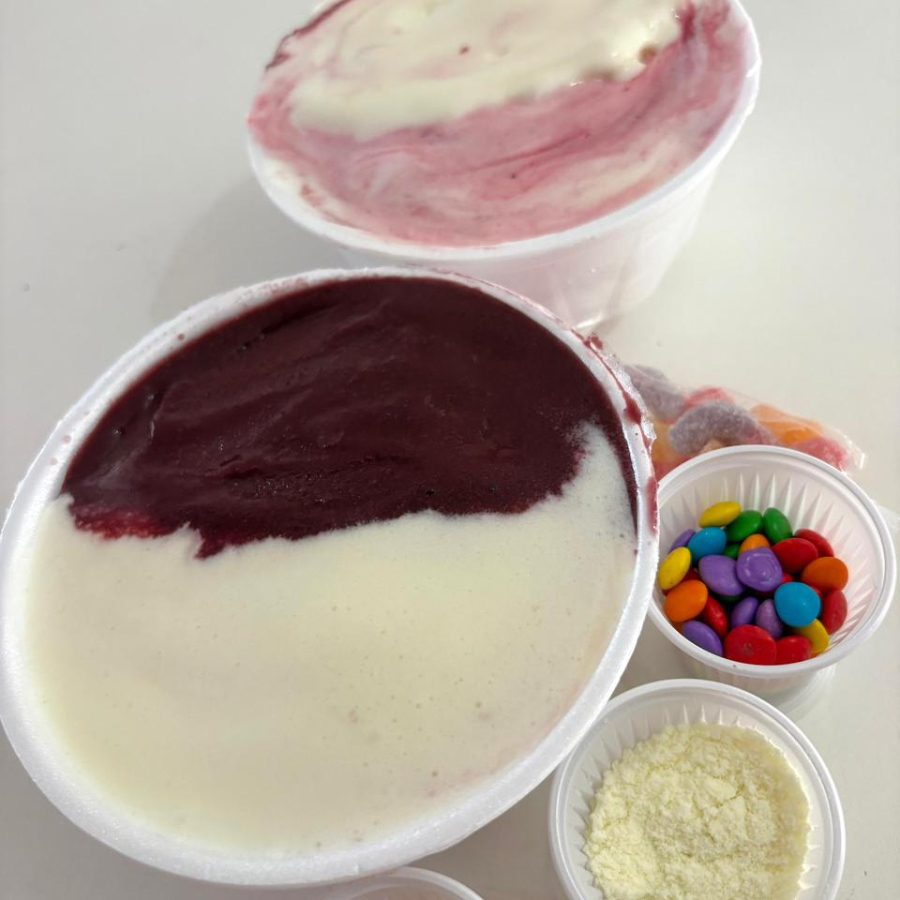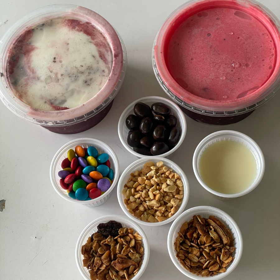 Tigela de Açaí de 360, personalizável com três itens à sua escolha, complementado com dois deliciosos cremes.