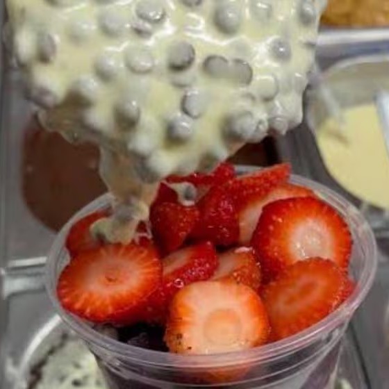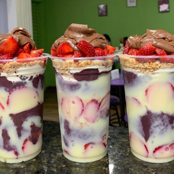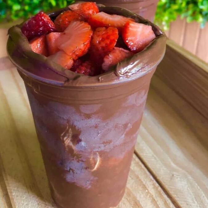Açaí + creme de avelã + morango + leite em pó + leite condensado