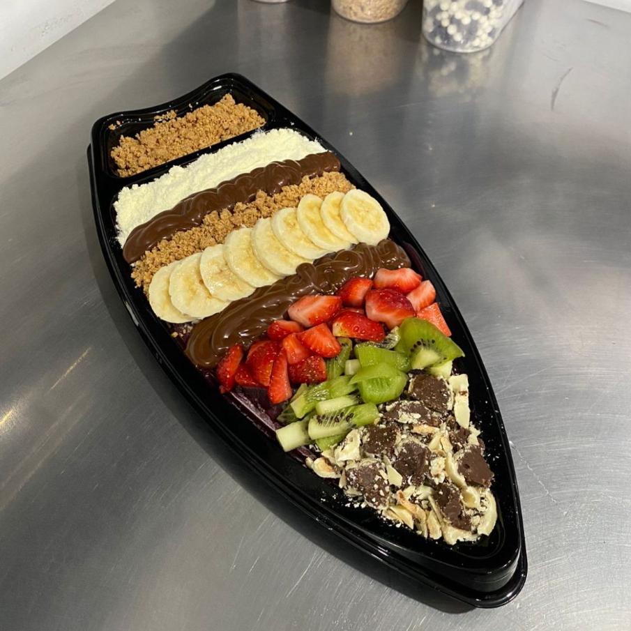 Aproveite nossa barca de açaí super cremoso de 650g, montado na hora e acompanhado de 6 adicionais à sua escolha. Uma combinação irresistível para você criar do seu jeito, com muito sabor e frescor em cada colherada!