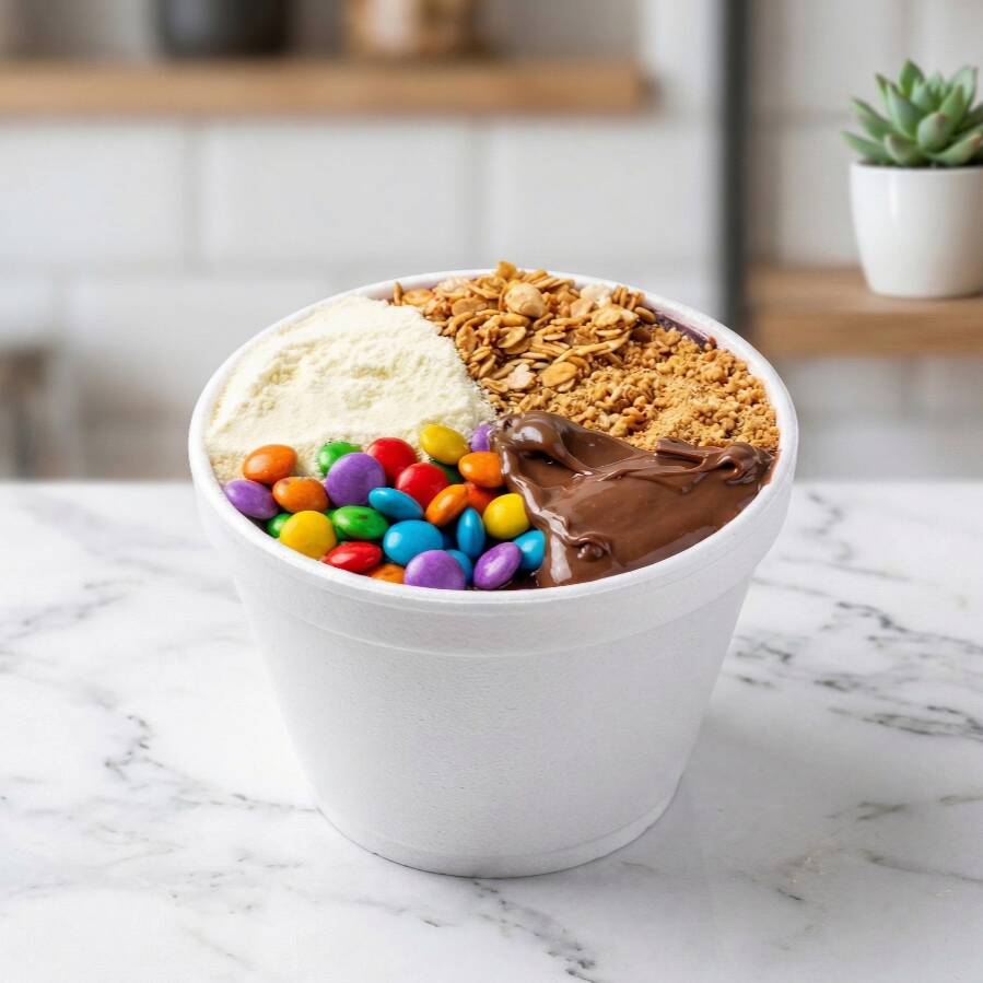 Copão 500ml De Açai + Leite Condensado + Leite Em Pó + Amendoim Triturado + Paçoca + M&m + ( 1 Adicional Grátis )🤤 Foto Ilustrativa