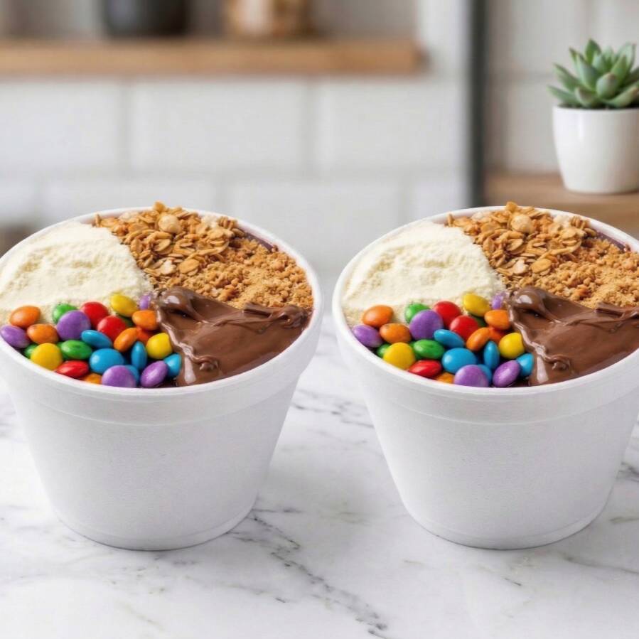 Copão de 500ml com Camadas generosa de Leite condensado + Leite em pó + Amendoim Triturado + Paçoca + M&M🍦🍦 Perfeito para dividir com alguém especial ou para aqueles dias em que um copo só não basta. Este combo promocional traz o dobro de sabor com um preço imperdível.