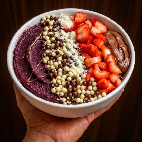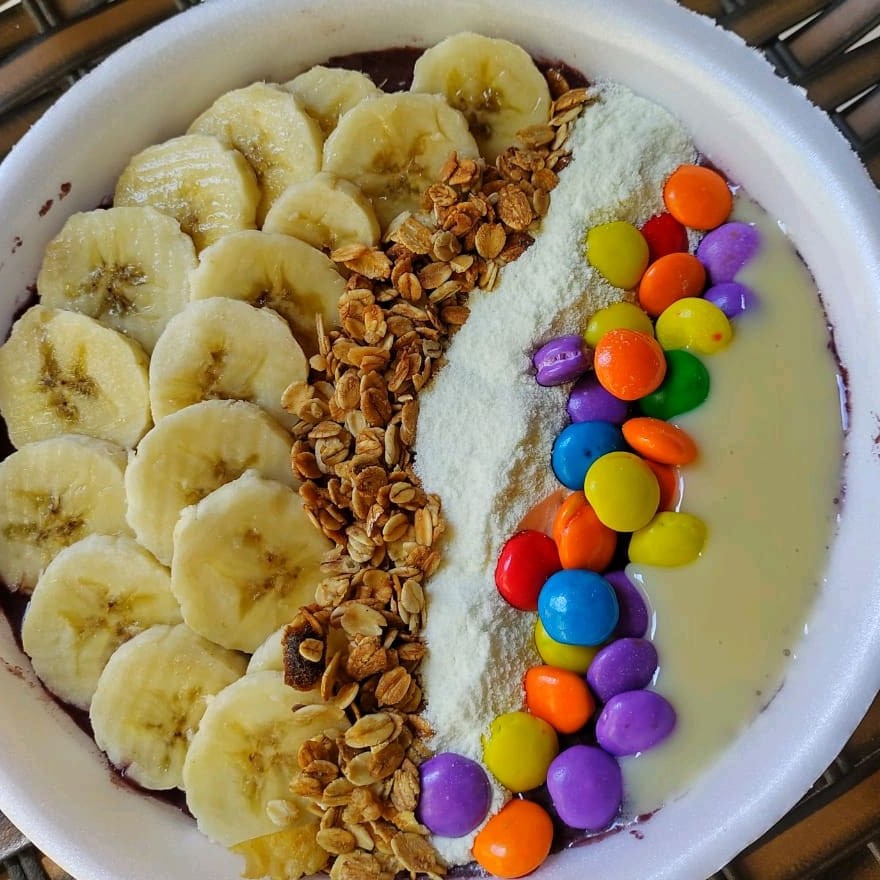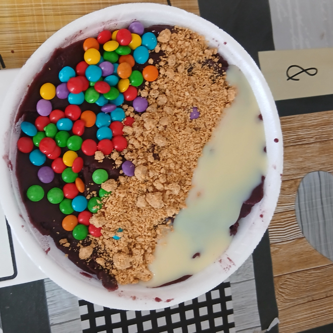 Aquele açaí cremoso e geladinho que você ama! 💜 São 700ml de puro sabor, perfeito para matar a fome ou compartilhar. Você ainda escolhe 5 acompanhamentos grátis para deixar do seu jeito! 😍 Monte sua combinação favorita e aproveite essa explosão de sabor!