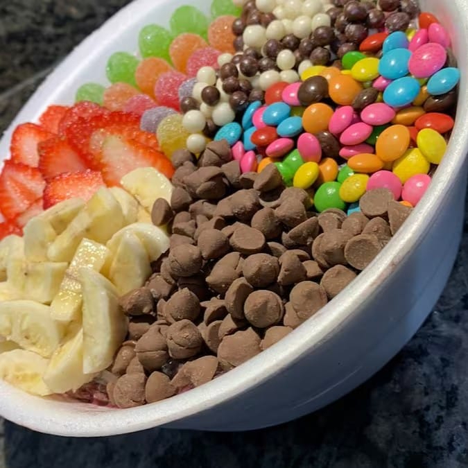 Delicioso Açaí premium que você monta do seu jeitinho, tem direito a 03 intens. Obs: embalagem de isopor