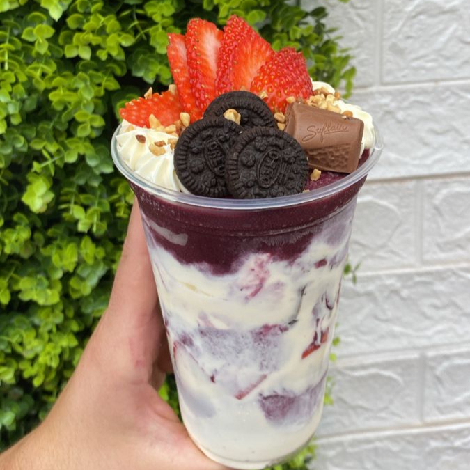 Copo de Açaí 700Ml Com Creme de Ninho: Acompanha: Leite em Pó + Leite condensado + Sucrilhos + Banana