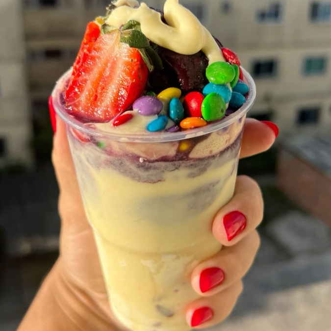 Copo de Açaí 700Ml com CREME DE MARACUJA: Acompanha: Leite condensado+ Leite em pó + M&Ms