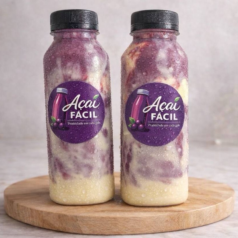 Açaí Ninho preparado com creme de leitinho e leite condensado, resultando em uma textura cremosa e sabor marcante.