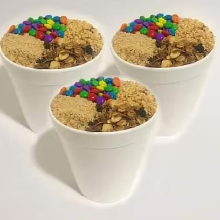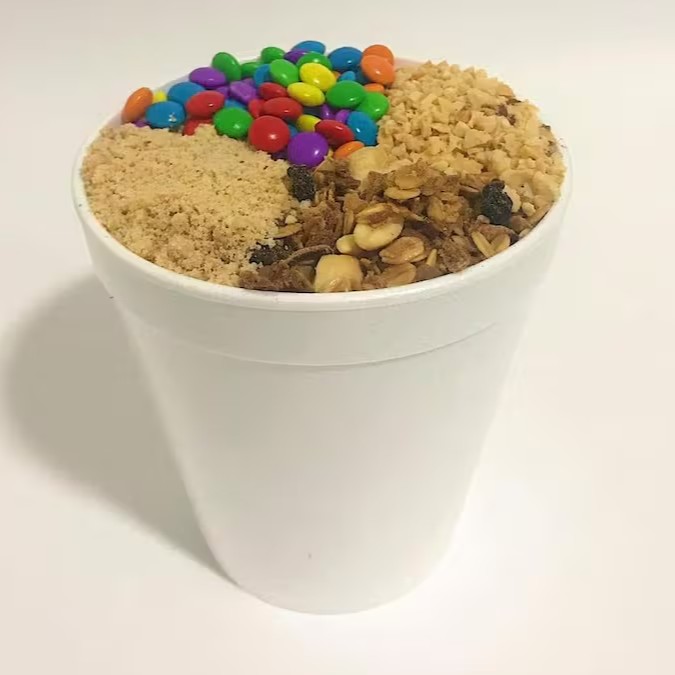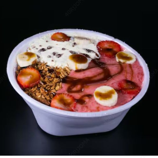 Açai delicioso que vei em uma embalagem de 710ml com até 04 itens que vão em camadas dentro do Açai.