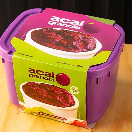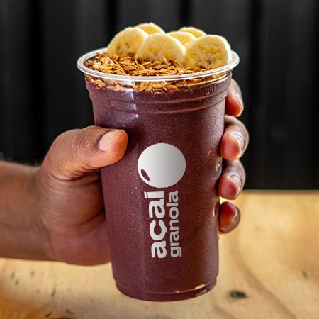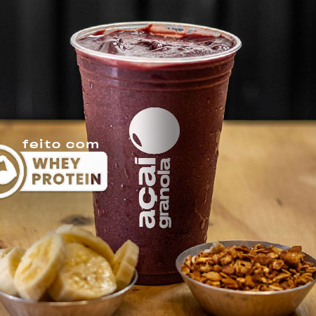 nosso delicioso açaí batido e sem xarope de guaraná, com banana e granola.