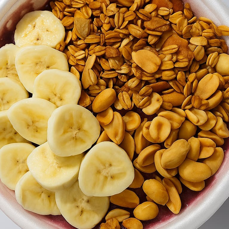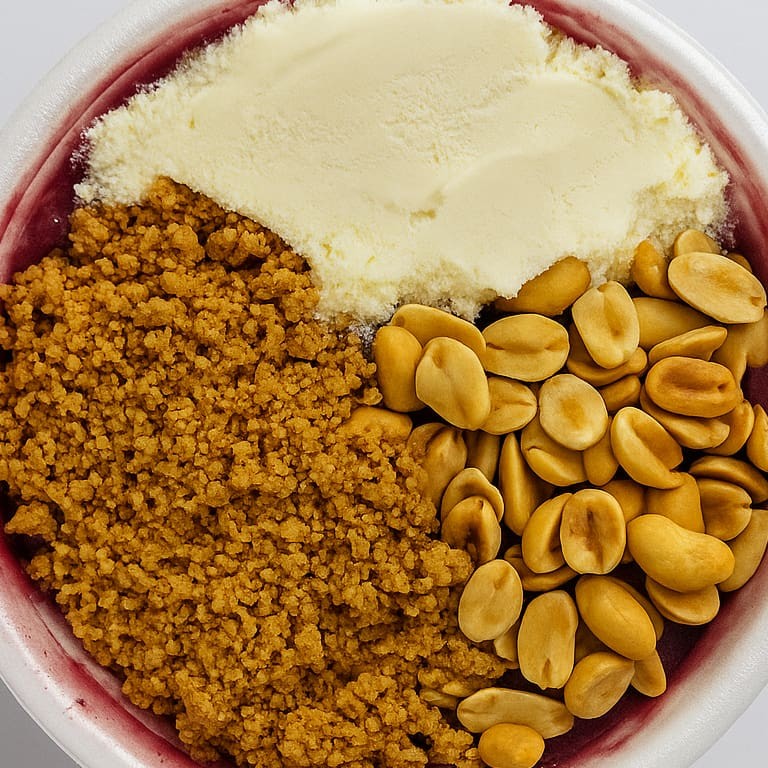 Uma explosão de sabor e energia! Nosso açaí tradicional ganha o toque doce e refrescante da banana, combinado com a crocância irresistível do amendoim. Uma mistura tropical que une frescor, textura e nutrição em cada colherada. Ideal para quem busca sabor autêntico e aquele reforço natural para o Dia.