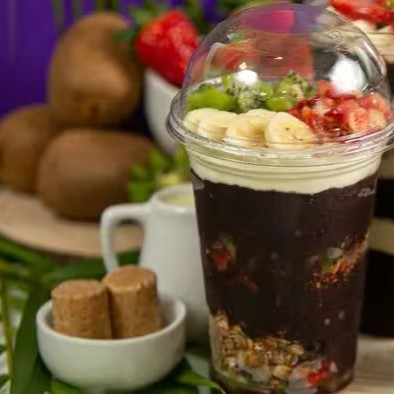 Experimente o Açai Mix de Frutas: uma combinação irresistível de açaí cremoso, cobertura de morango, crocante granola e frutas frescas. Refrescante, nutritivo e cheio de sabor!