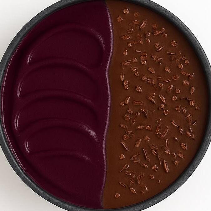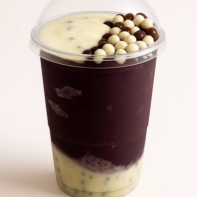 Descubra o equilíbrio perfeito: metade Chocolate Africano, metade açaí cremoso!