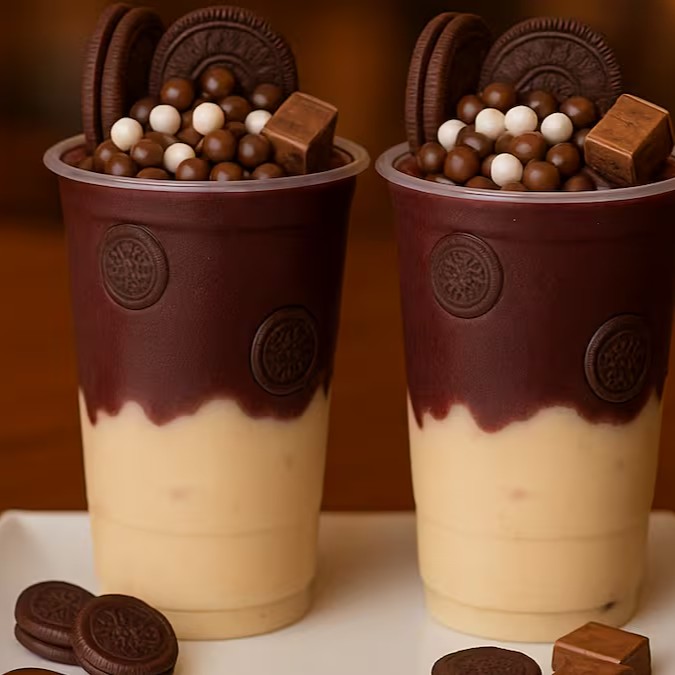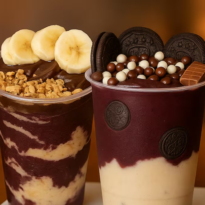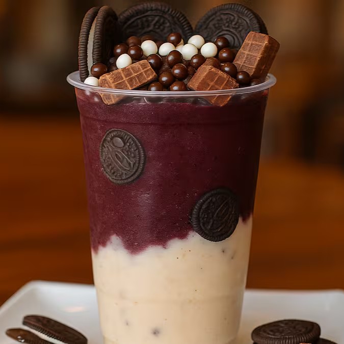 Uma combinação irresistível: açaí cremoso com biscoito Oreo, paçoca e a crocância do Ovomaltine e Leite Condesado. Um verdadeiro espetáculo de sabor!