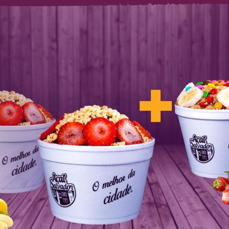 02 Açaí de 710ml inclusos 03 acompanhamentos que vão em camadas dentro do açaí.