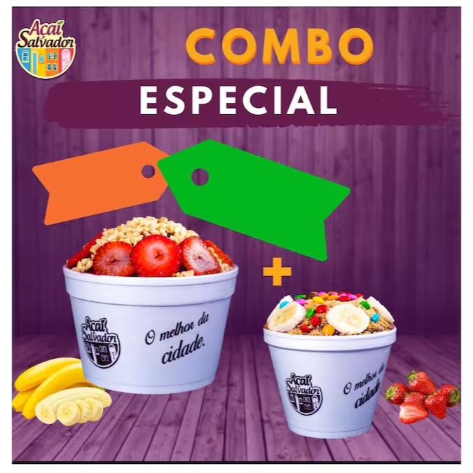 Na compra de 02 açaí de 480ml com 03 acompanhamentos que vão em camadas dentro do açai.