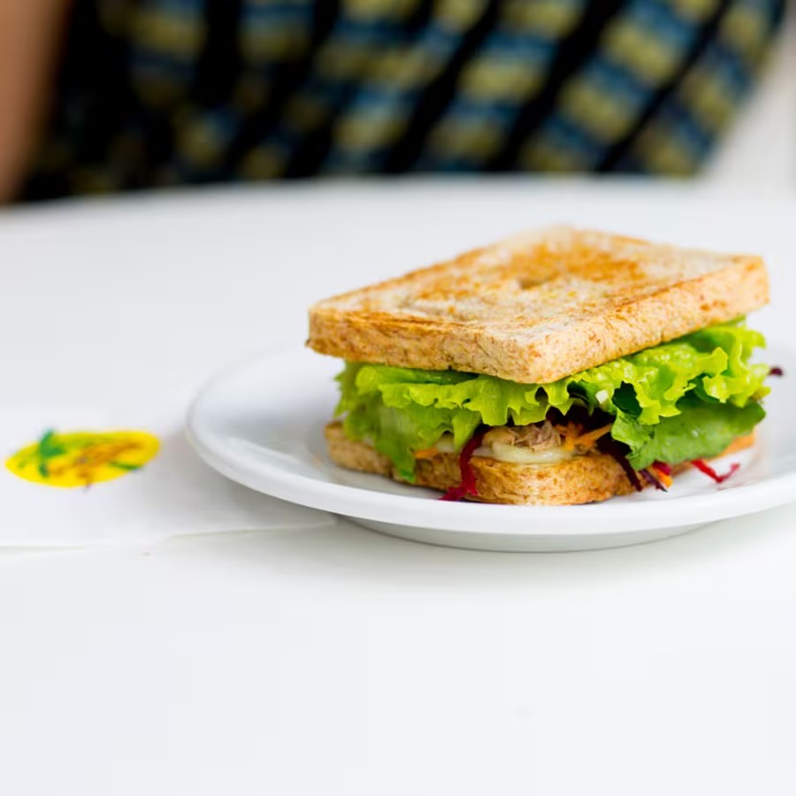 Sanduíche de pâo de forma fresquinho com peito de frango desfiado temperado, cream cheesse, milho verde, cenoura ralada e queijo mussarella. Pra deixar seu Dia mais leve e gostoso!