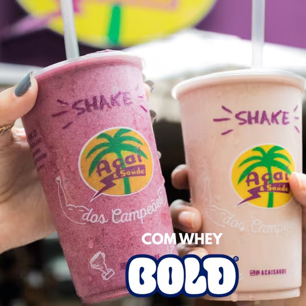 Açaí, Banana, Morango, Abacaxi, Whey Protein Bold com ou sem xarope de Guaraná.