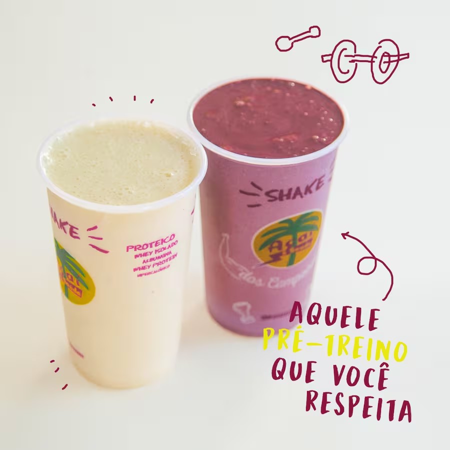Açaí, banana, leite, amendoim, whey protein, Xarope de Guaraná e Guaraná em pó