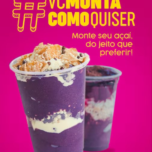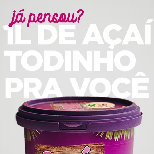 Açaí com receita própria, produção diária e sabor único. Nosso açaí é de verdade. *Acompanha granola