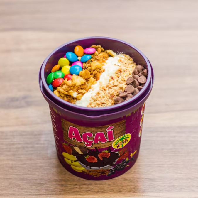 Açaí com receita própria, produção diária e sabor único. Nosso açaí é de verdade. *Acompanha granola
