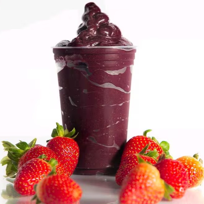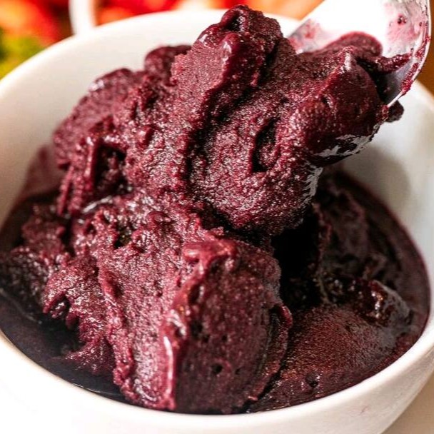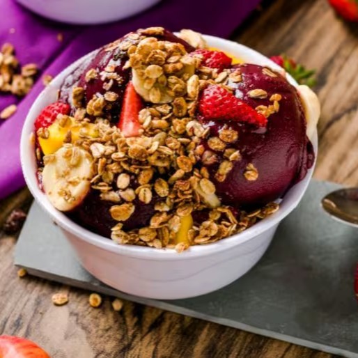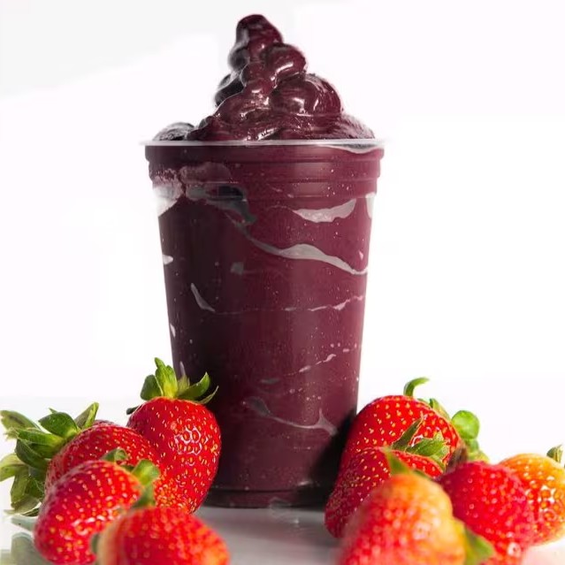 Açaí 300 gramas tradicional 3 acompanhamentos e uma fruta Grátis: Granola, paçoca, Leite condensado e Morango.