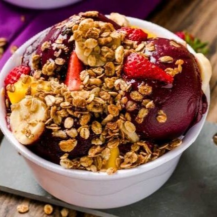 700 gramas de açaí tradicional, com 4 acompanhamentos Grátis e 2 frutas! Açaí sem glútem e sem lactose