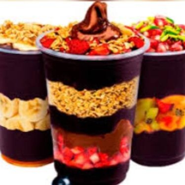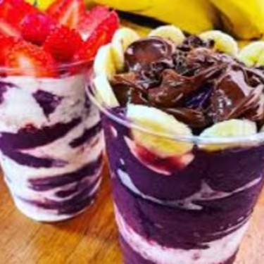 Açaí 0 açúcar sem adição de xarope. 300gramas de açaí, 3 acompanhamentos Grátis e 1 fruta