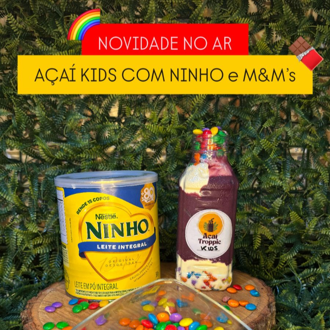 O açaí que faz qualquer criança sorrir 😍 Cremoso, docinho e com leite Ninho + M&M’s coloridos 🍫🌈 👉 Um mix perfeito de sabor, cor e diversão 👉 Ideal para deixar o dia dos pequenos ainda melhor