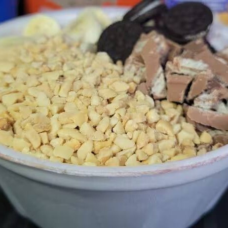 Acompanha amendoim, Leite Em Pó e gotas de chocolate