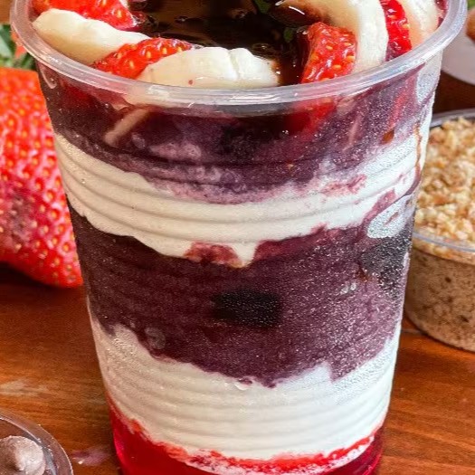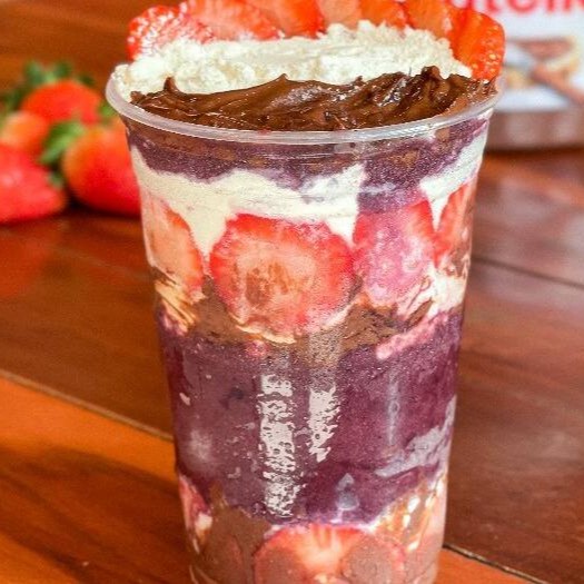 Açaí 480ml + Creme De Ninho + Leite Em Pó + Granola + Cobertura De Morango