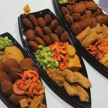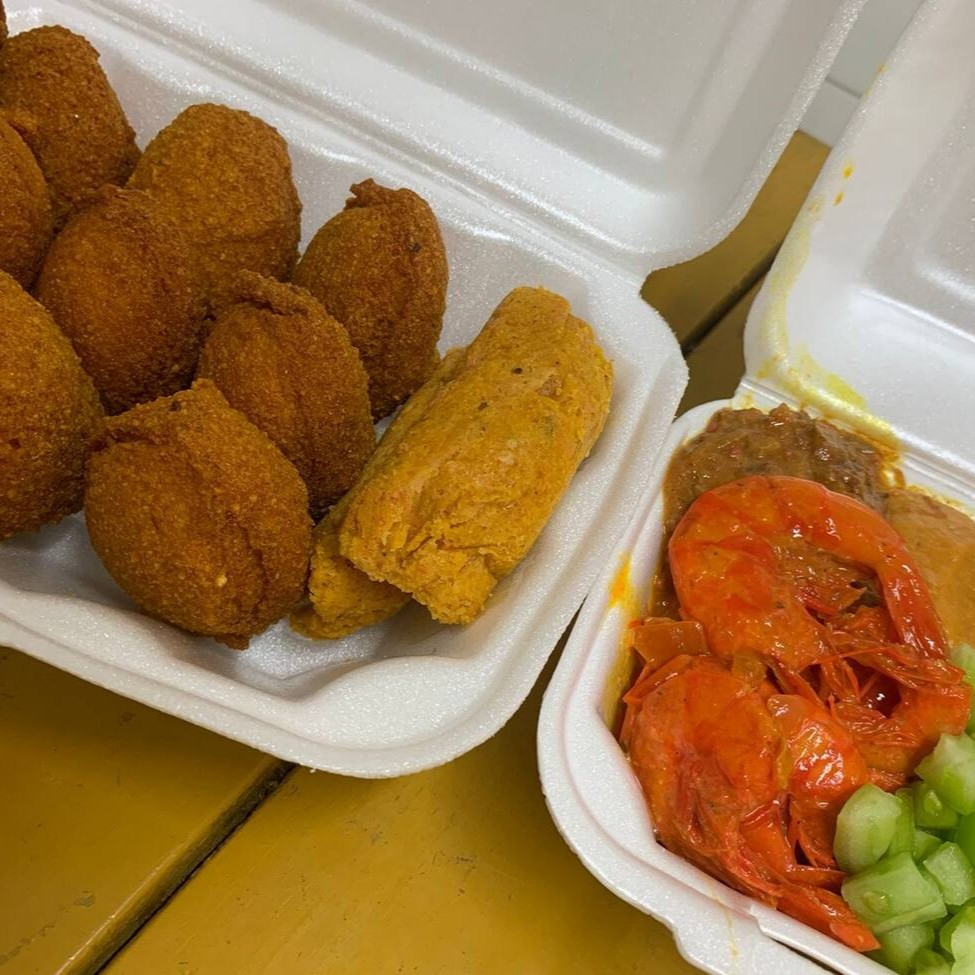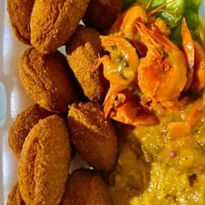 20 bolinhos + 5 abarás Vatapá, caruru, salada e camarão