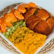 1 acaraje vatapa, caruru, salada com camarao defumado