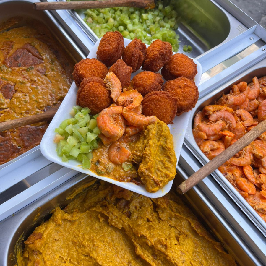 Abará, vatapá, caruru, salada e pimenta