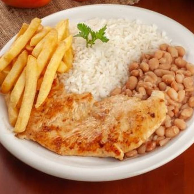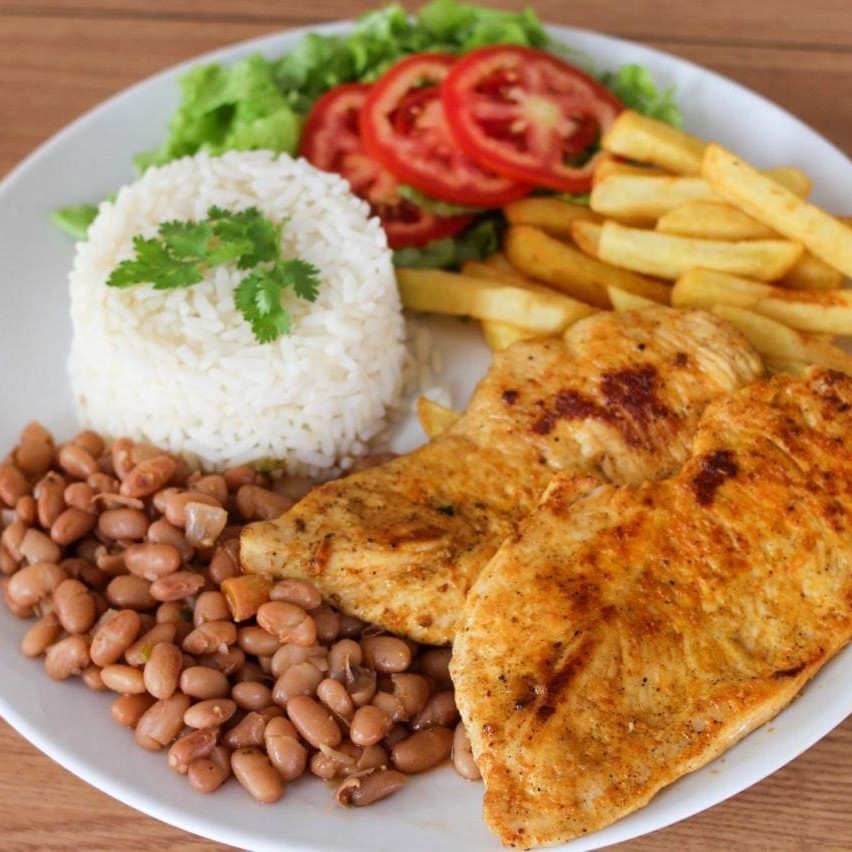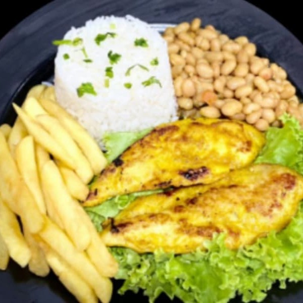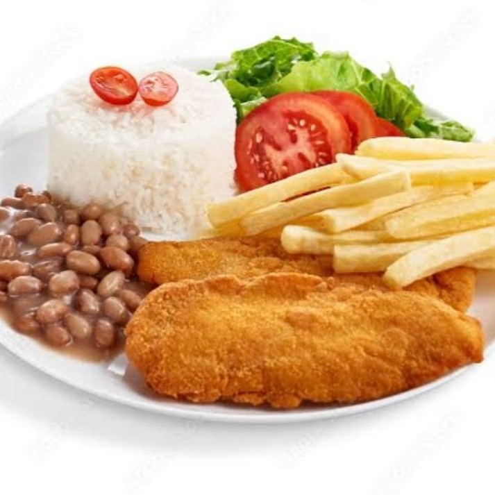 Super Filé De Frango Com Fritas E Salada, Arroz E Feijão