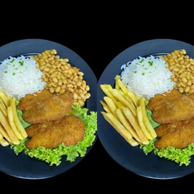 2 Almoços completos com milanesa de frango que acompanha: Arroz, feijão de caldo e batata frita. Feito com filé de frango temperado e empanados, fritos na temperatura de 180 deixando deliciosamente crocantes!