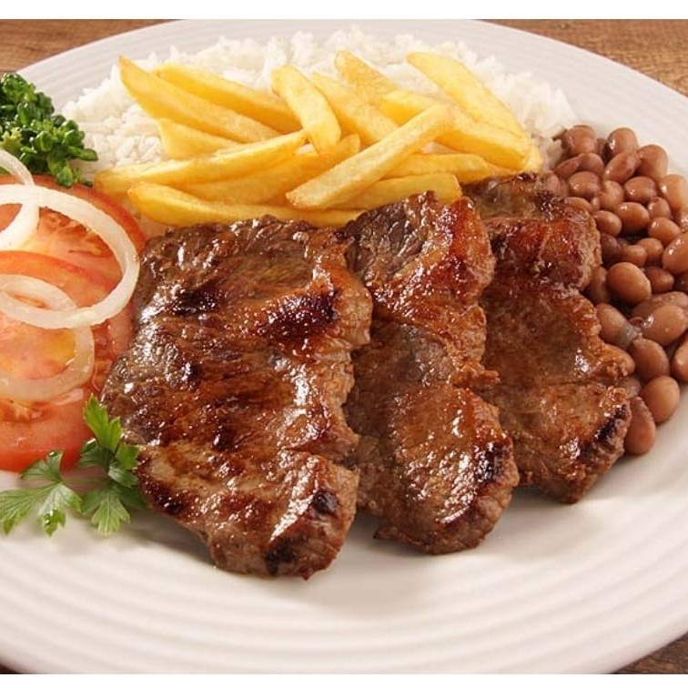 Um almoço clássico e irresistível! Feito com filé de alcatra, acompanhado daquele trio inseparável: arroz, feijão de caldo e batata frita!