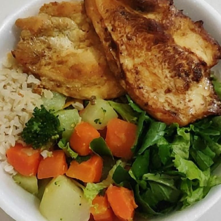 Filé de Frango grelhado com Salada verde! Aquele clássico e completo! Acompanha arroz, feijão de caldo e uma deliciosa saladinha verde.
