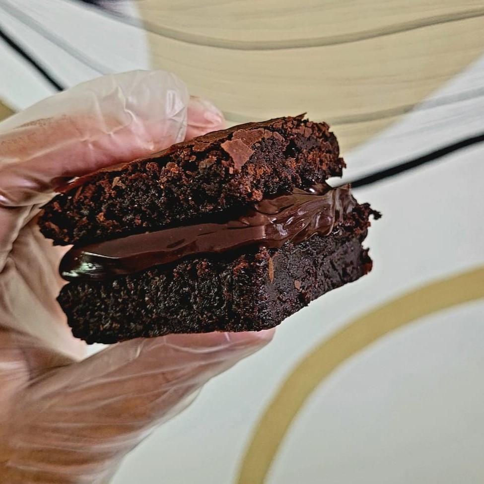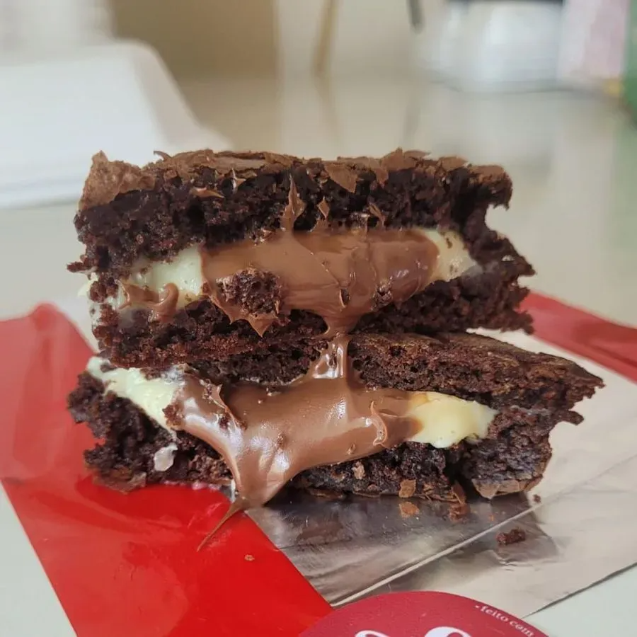 Brownie macio com recheio cremoso de creme de leite Ninho e Nutella, união irresistível