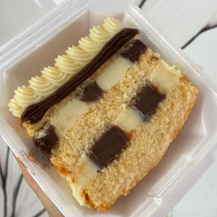 Fatia de bolo de baunilha fofinha com duas camadas de recheio irresistíveis intercalados: brigadeiro cremoso de Ninho e brigadeiro de chocolate. Uma combinação clássica e deliciosa que une o melhor dos dois mundos!