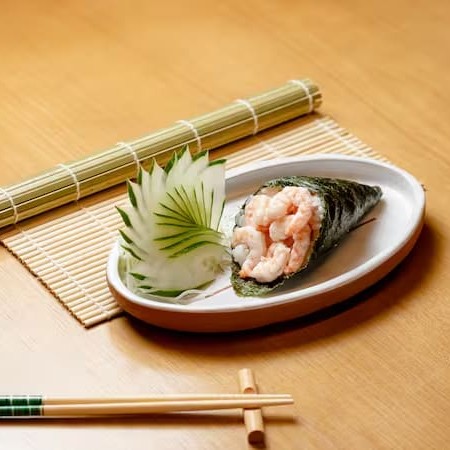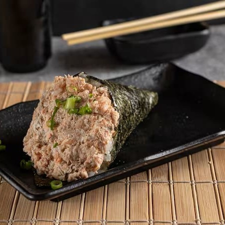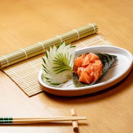 Um temaki irresistível recheado com salmão grelhado, arroz temperado, cream cheese cremoso e finalizado com cebolinha fresca, este temaki combina a textura macia do salmão grelhado com o frescor dos ingredientes envolvido numa alga levemente crocante.