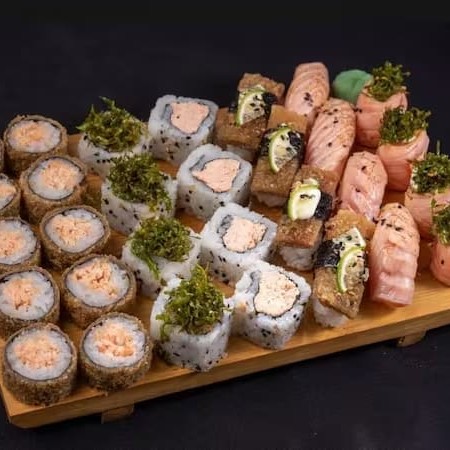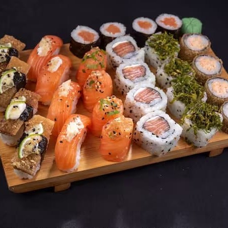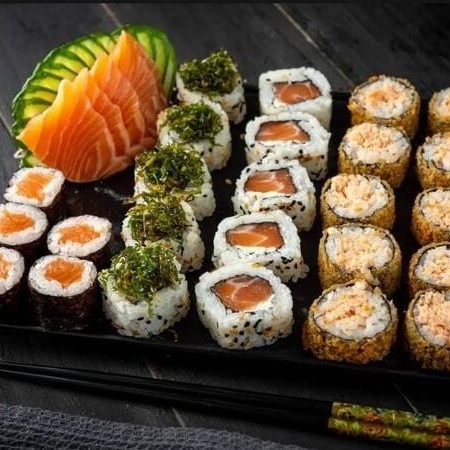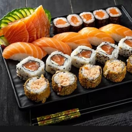 5 Sashimi 5 Niguiri salmão 5 Shakemake 5 Uramaki salmão 5 Hot holl