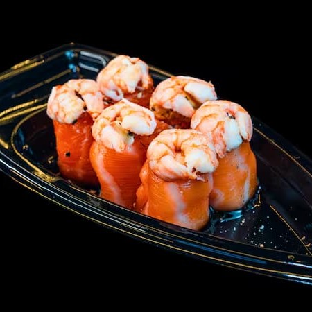 Saboreie o Joy de Salmão com Camarão, uma combinação perfeita de salmão fresco e camarão suculento, servidos em 6 unidades. Cada joy oferece uma explosão de sabores, onde a suavidade do salmão se encontra com a textura delicada do camarão, criando uma experiência gastronômica sofisticada e única.